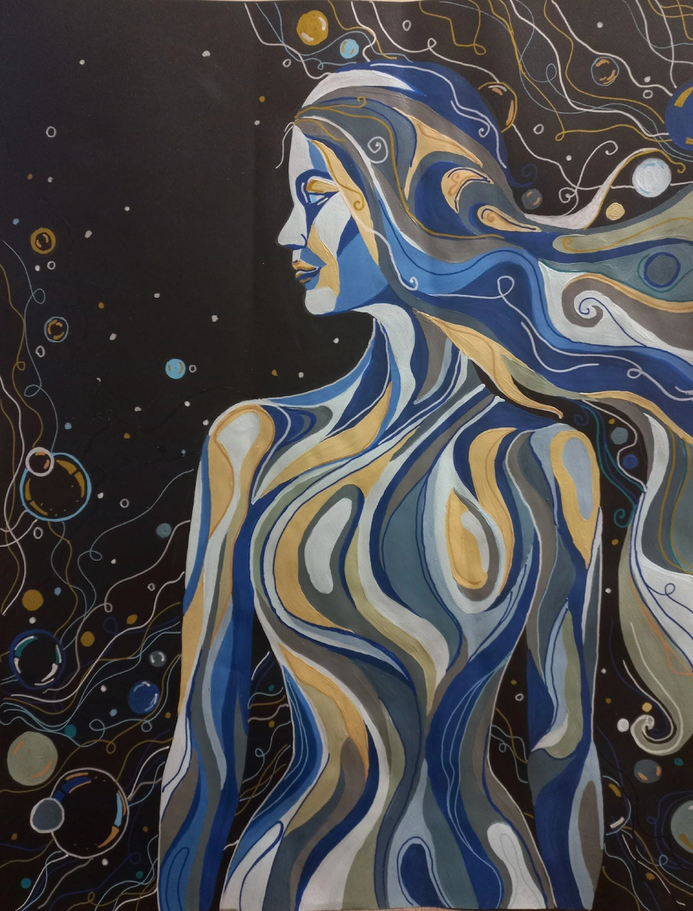 Նկարը պատկերում է մարդու և ջրի անբաժանելիությունը։ Մարդու օրգանիզմի մեծ մասը կազմում է ջուրը, իսկ ջուրը ունի գիտակցություն, ինչպես մարդը։