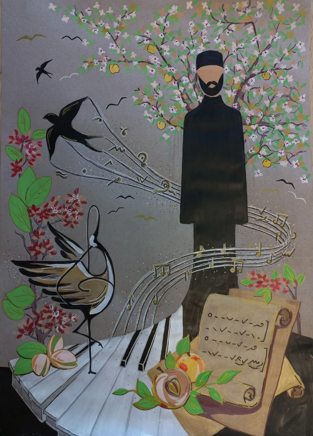 «Կոմիտաս. Երգերի միջով», ակրիլ թղթի վրա, հեղինակ՝ Մերի Խաչիկյան