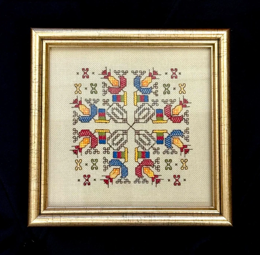 This exquisite handmade Armenian embroidery features vibrant geometric patterns beautifully combined with traditional pomegranate motifs – symbols of fertility, abundance, and eternal life in Armenian culture. Crafted with precision and care, this wall decor piece brings both cultural richness and elegant artistry to any space.